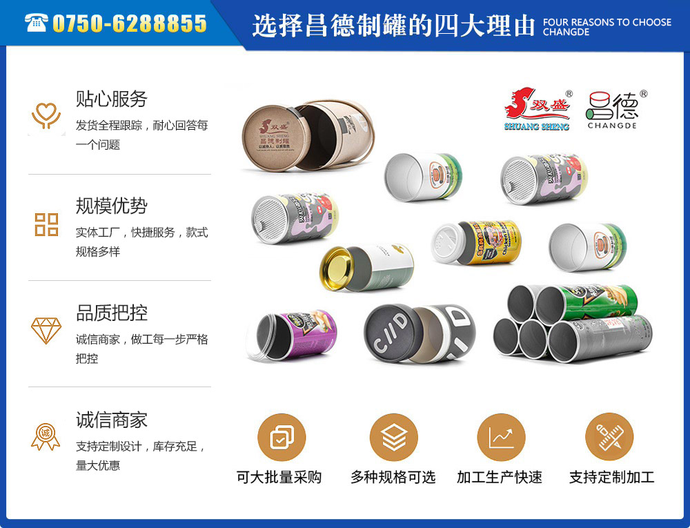 江門市昌德五金制罐有限公司位于江門與珠海臨近的古井鎮(zhèn),是專業(yè)生產紙罐,食品紙罐系列的包裝研制、開發(fā)、生產的廠家,從建廠至今,公司本著“重合同、守信用”的原則,以“質量求生存,客戶至上”為經(jīng)營宗旨,贏得了很好的信譽,公司擁有國內一流的技術設備和多年的生產經(jīng)驗。年產休閑食品紙筒500萬左右,紙筒2000萬支左右,易拉罐,食品罐等1000萬左右,產品銷往各地。我廠是以高科技為先導,以技術創(chuàng)新整合為手段,成為迅速崛起的專業(yè)性包裝企業(yè),憑借艱苦的創(chuàng)業(yè)精神和集體智慧,采用規(guī)范的現(xiàn)代企業(yè)運行機制,形成具有鮮明特色的企業(yè)文化模式和管理...